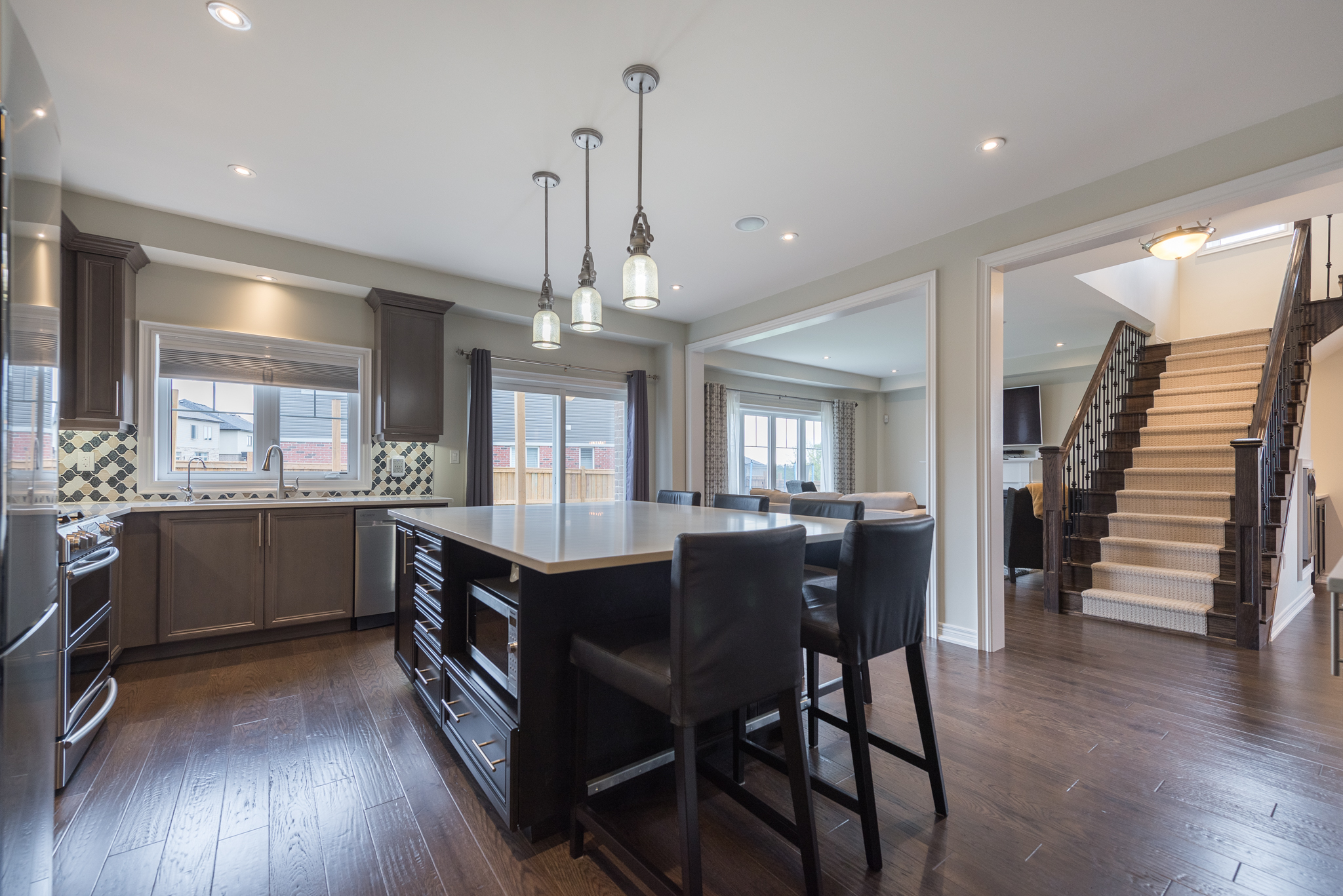 Welcome to this stunning 5 bedroom 6 bath beauty that has over 5000 sq ft of living space situated on a premium 59’ lot. Completely finished home from the basement all the way to the 4th level loft with inlaw suite . Only the finest materials and craftsmanship with oversized baseboards, handscraped hardwoods, Colonial smooth doors, custom cabinetry, the list goes on and on. Open concept floorplan boasts a large dining room perfect for entertaining family at the harvest table. Custom built cabinetry and quartz countertop featured in this kitchen with huge 7’x4’ island and coffee bar. Sliders from the dinette lead to a HUGE brand new deck, natural gas BBQ line and in a fully fenced yard. Entire home wired with CAT6 in every room and music system with speakers throughout. Custom designed loft perfect for the blended family or a granny flat. Kinetico premier series water softener, dechlorinator and K5 Drinking water reverse osmosis system installed in basement with drinking water line to fridge. A must see!!
